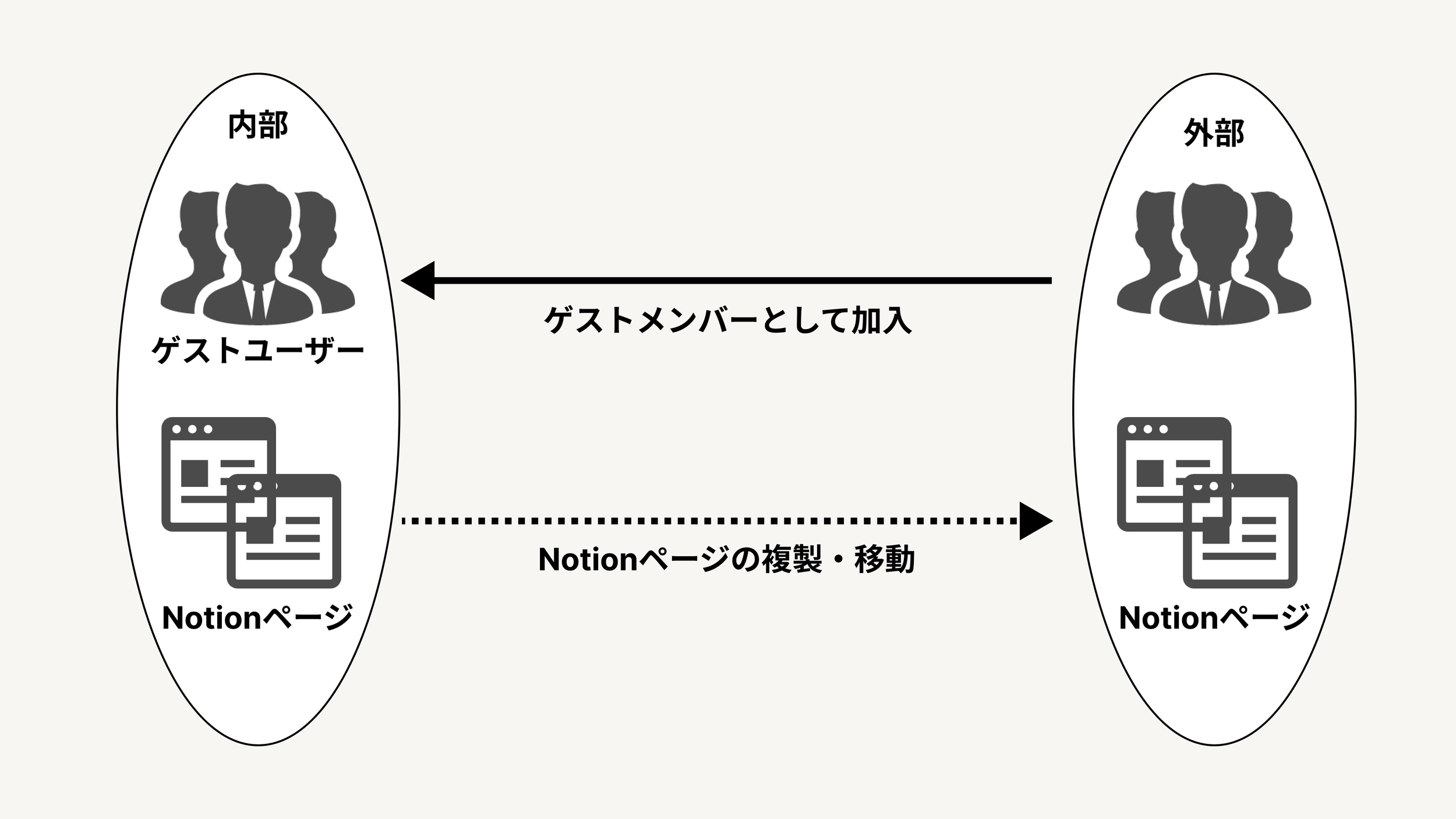 「フルアクセス権限」を持つユーザーは、ワークスペース内の人だけでなく外部のユーザーをゲストユーザーとして招待することが可能です。起こりうるリスクとして、内部の不正者やコントロールされたユーザーが外部の悪意のあるユーザーを招待してしまい、情報が盗まれたりデータを破壊されたりする恐れが考えられます。管理者が内部のユーザーの権限設定を適切に行うことが大切ですが、よりNotionの使い方について社内の人が知る必要があります。