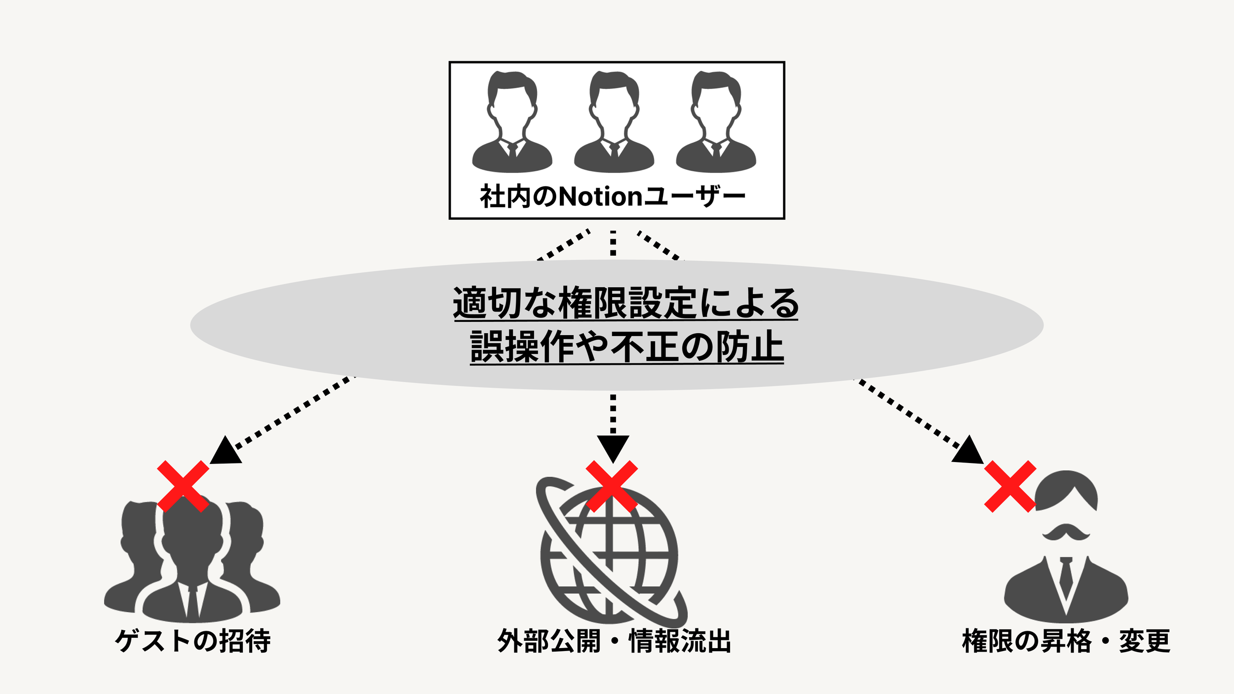 先に説明したセキュリティリスクですが、実は運用上で防止できるものやNotionのプランによって回避できるものがほとんどです。以下に具体的な対策をご紹介していきます。