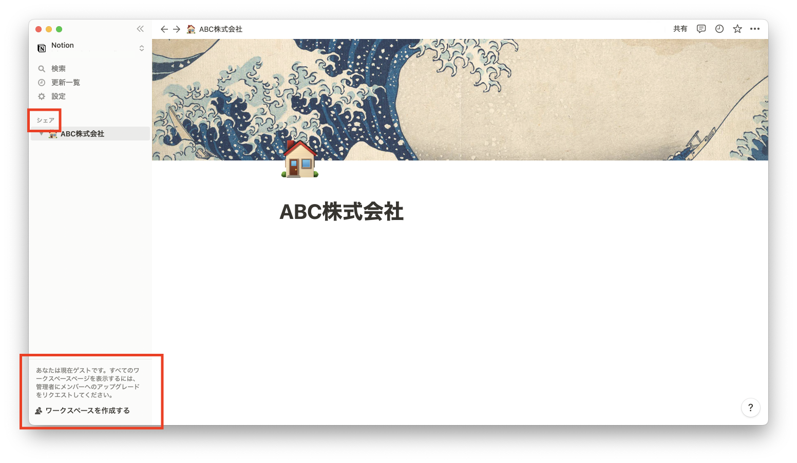 特定のページで共同作業するチーム外のユーザーをいいます。個々のNotionのページに招待することはできますが、ワークスペース全体に招待することはできません。また、ゲストはプライベートページにアクセスすることができず、共有されたページにしかアクセスできません。
