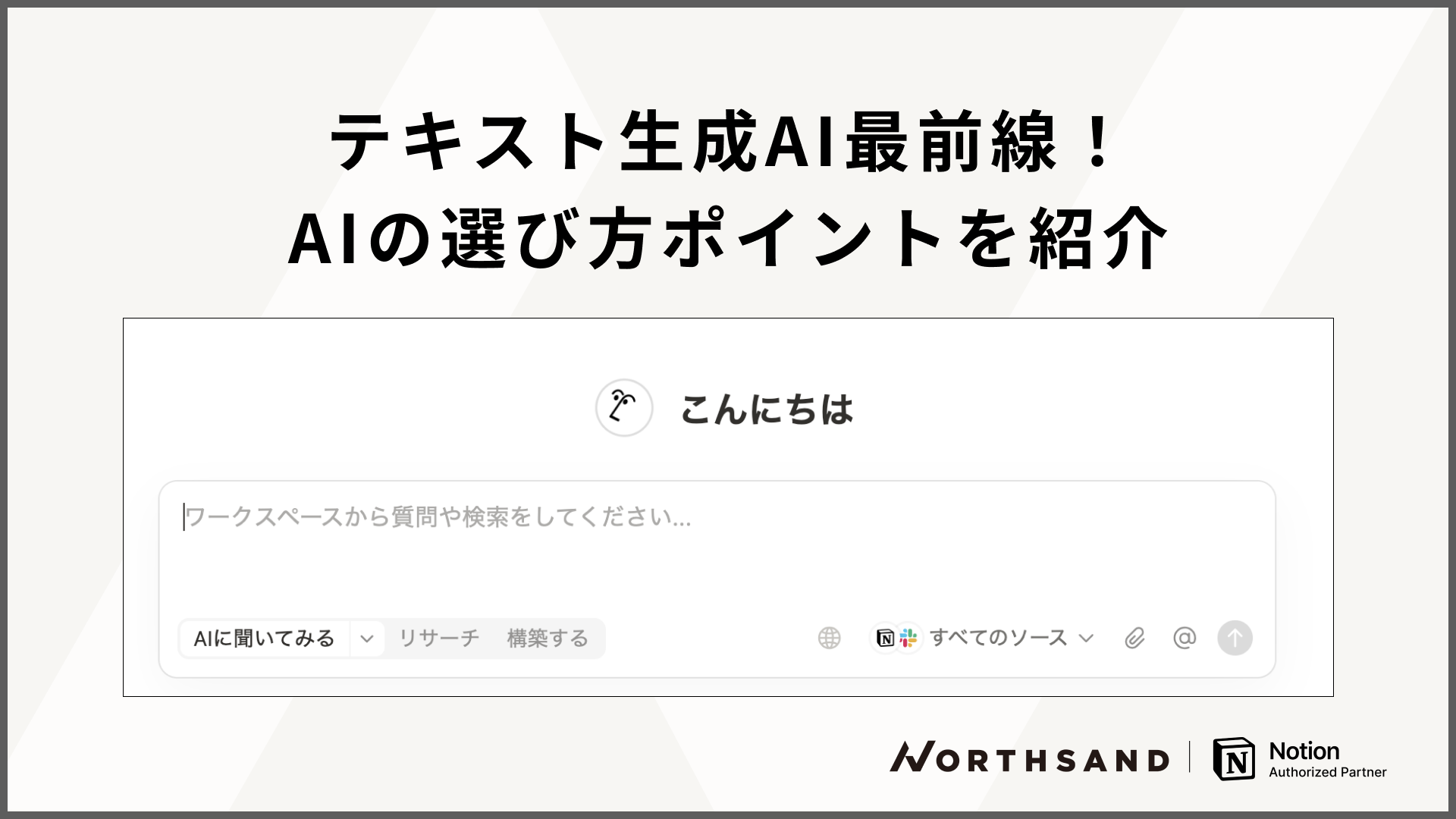テキストや画像、動画など、AI生成は個人利用やビジネスへの用途を問わず、多岐にわたって活用されるようになりました。生成AIの活用拡大に伴って、昨今ではさまざまなツールが登場しており、もはや用途に応じた最適なAIの選定に迷うケースもあるでしょう。そこで本記事では、テキスト生成AIに焦点を当てて、テクノロジーの最前線や特徴を紹介していきます。また、テキスト生成AIの領域において機能のアップデートが目覚ましいNotion AIについても最新情報をお届けします。