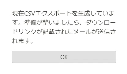 エクスポートメニューから対象期間を選ぶと、メッセージが表示されます。メールでくれるらしいです。
