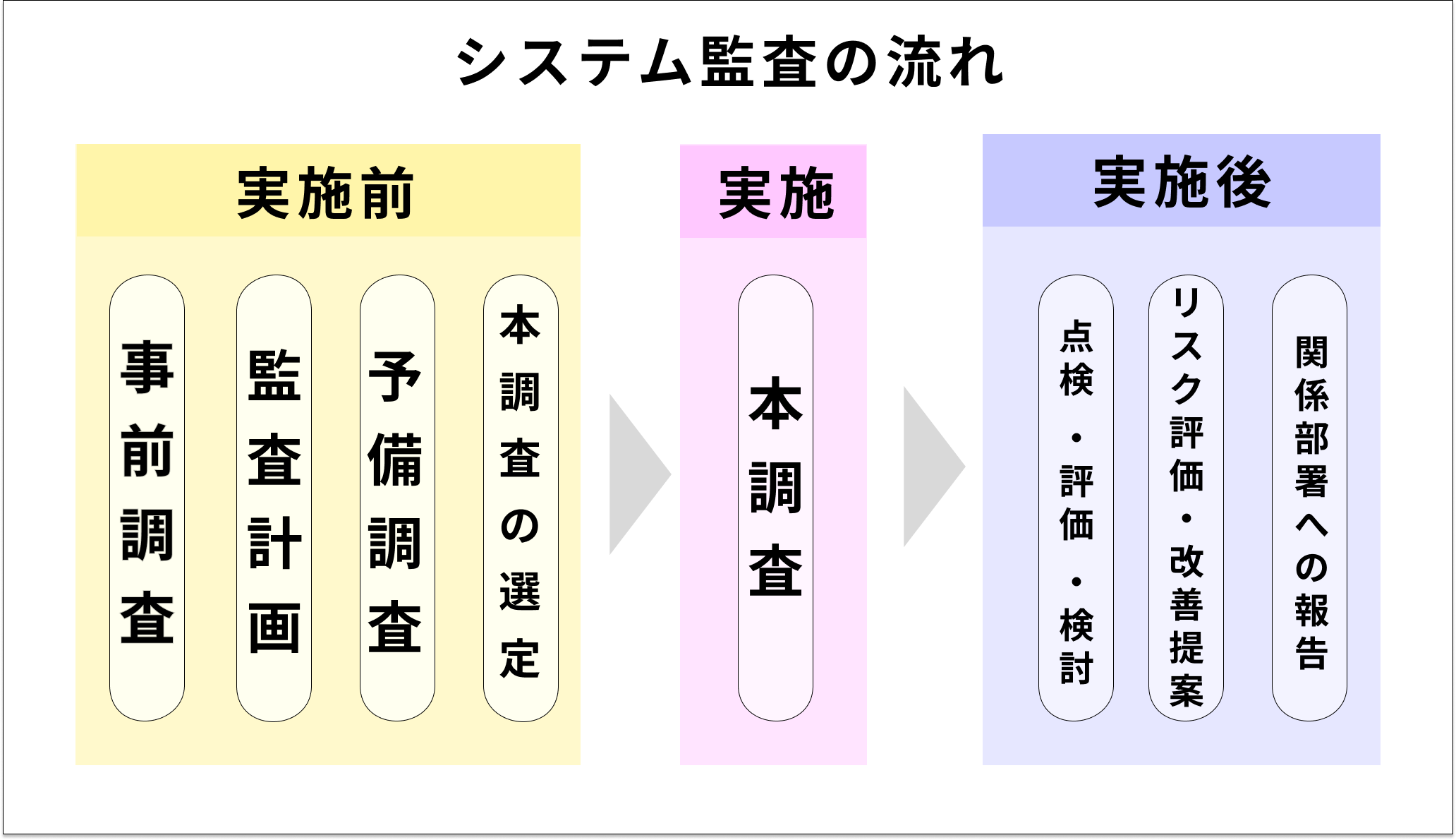 そのうえで、業務目標に対するシステムの寄与度の確認とともに、不正・事故・障害などを未然に防止することが監査の目的です。企業規模に関わらず、情報資産の適切な管理は経営の根幹に関わります。