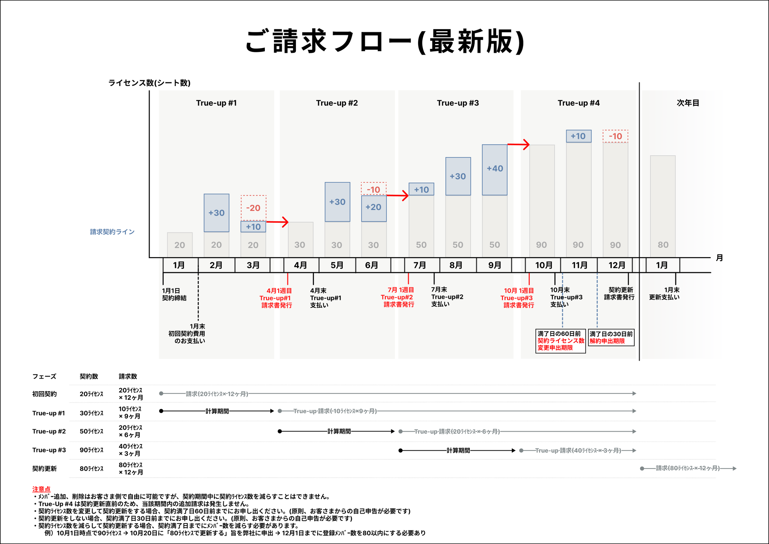 契約期間中にユーザー数を減らすことはできません。ユーザーを減らすには契約更新の “60日前” に通知が必要となります。(6.3)