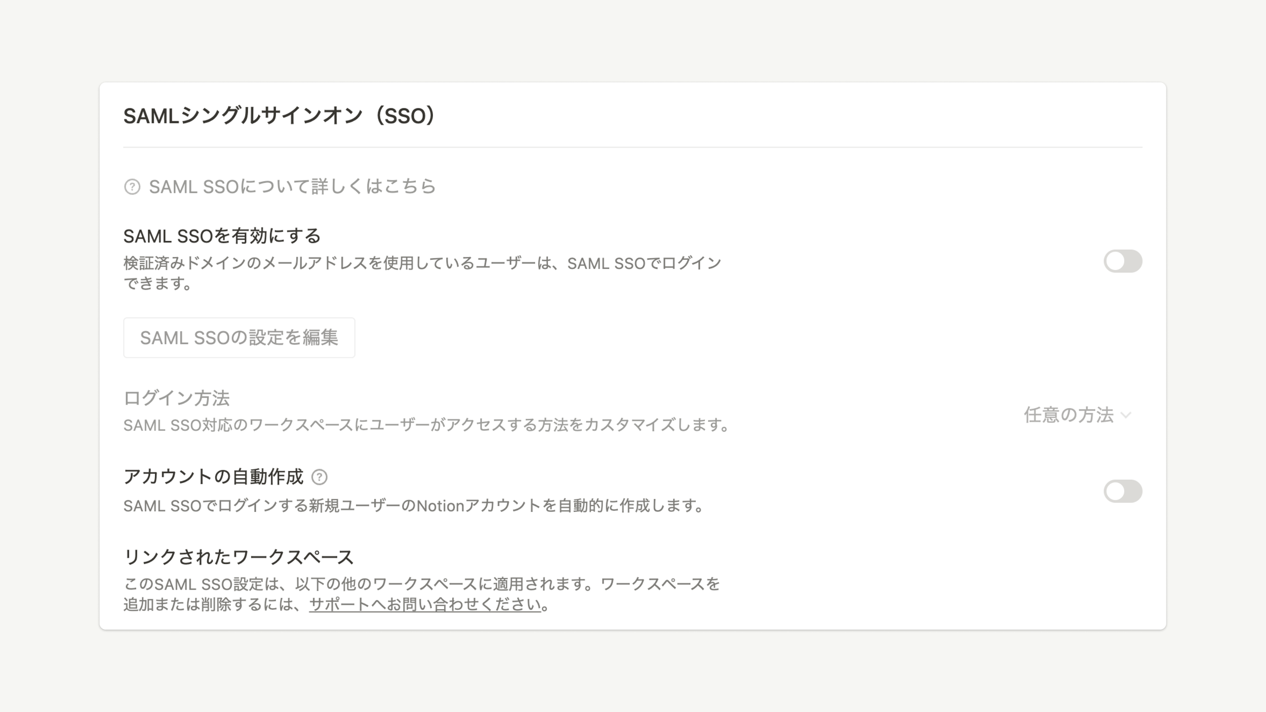 Notionをチームで利用する際には、特にNotionエンタープライズプランが利用できる場合、SSOの利用が推奨されます。