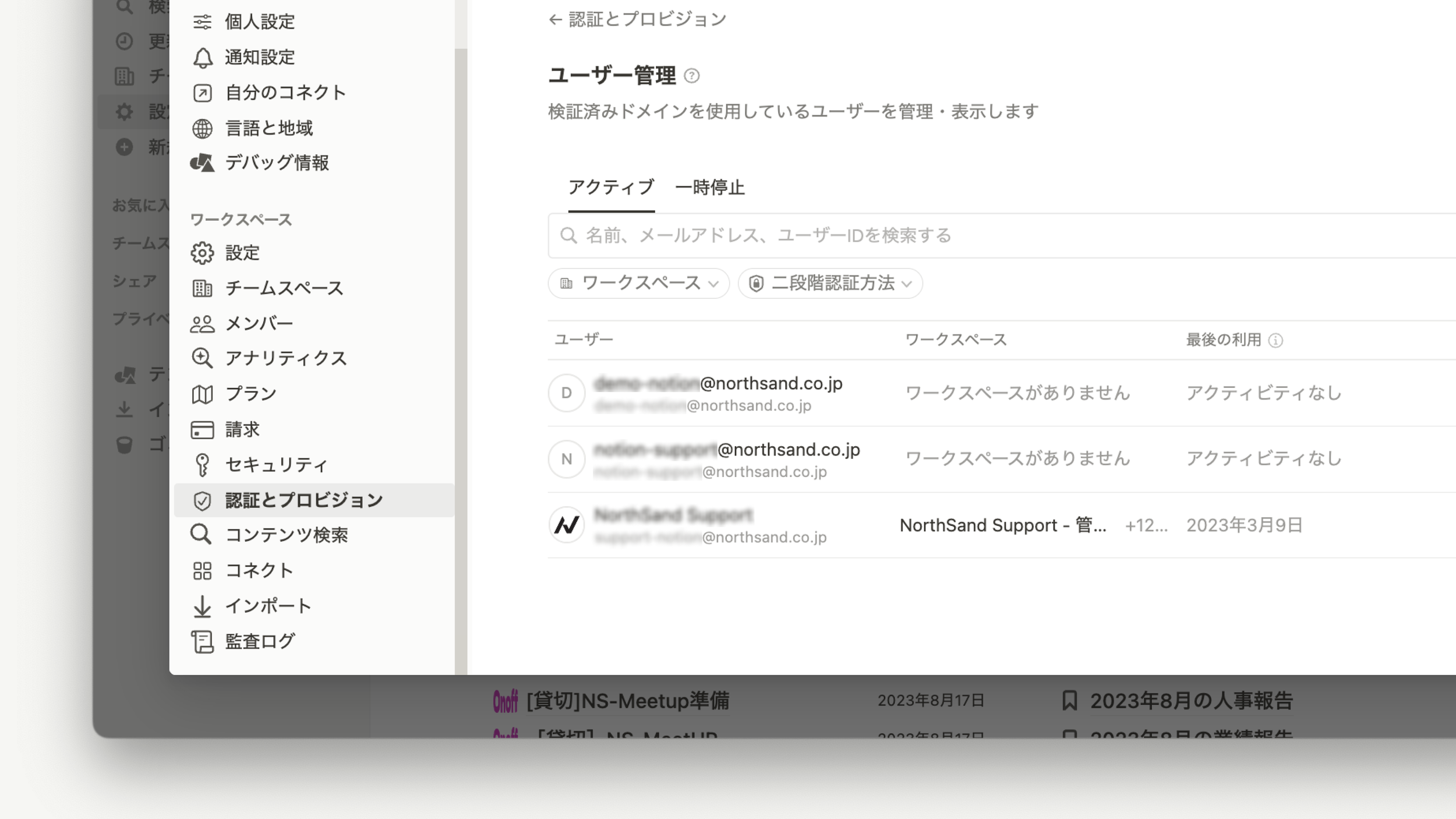 管理対象ユーザー:検証済みドメインのメールアドレスで作成されたNotionアカウント