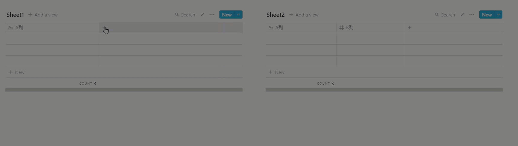 では先ほど作成したNotionのSheet1テーブルに、早速Rollup列を追加してみましょう。