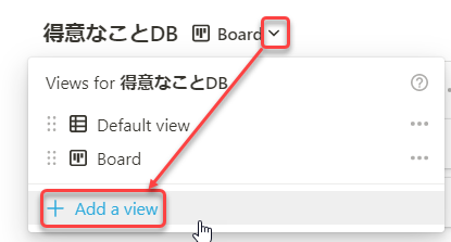 データベースを作ると必ず現れる、「+Add a view」の文字。