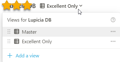 ちなみに、ひとたびビューを追加してしまうと、データベース名の横にあったはずの「+Add a view」ボタンが消えてしまいますが、ビューの切り替えボタンを押せば下部にしっかりいますのでご安心ください。