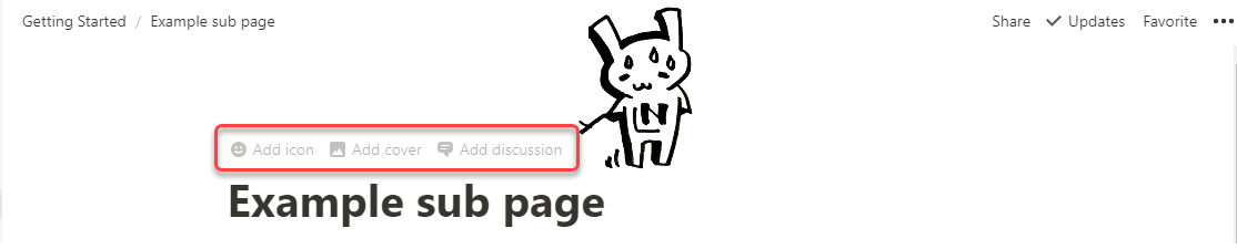 ちなみにこのアイコン、ランダムにNotion先生がつけてくれるのですが、自由に変更可能です。以下のいずれかの箇所をクリックすれば、アイコン選択画面が出てきます。