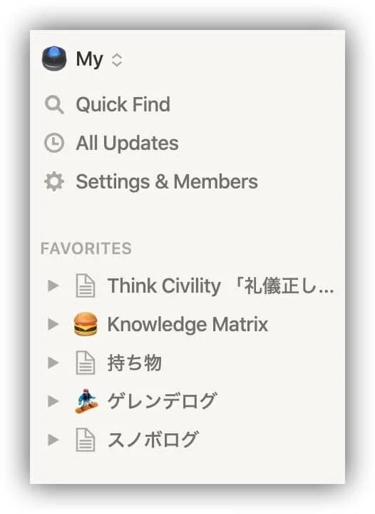また、Fav の棚卸しも簡単なので日々使わないFavページがあったら即座に外しましょう。体感ですが、1ヶ月触らないページがあればFavから外すような運用で現状は回っています。